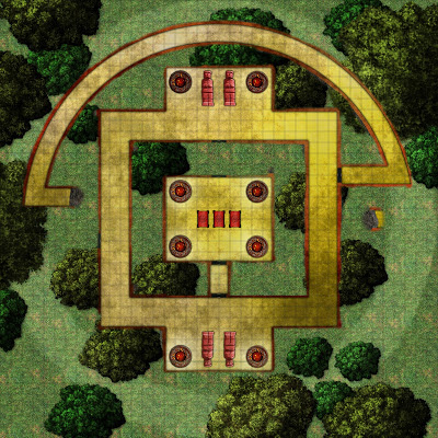 The group wastes no time. After Durego casts a holy blessing they proceed cautiously, keeping closer together than usual. Around and down to the door, then open and in and right, back to the site of yesterday's battle. As Durego rounds the corner, he stops short, surprise evident on his face. "They're gone!"